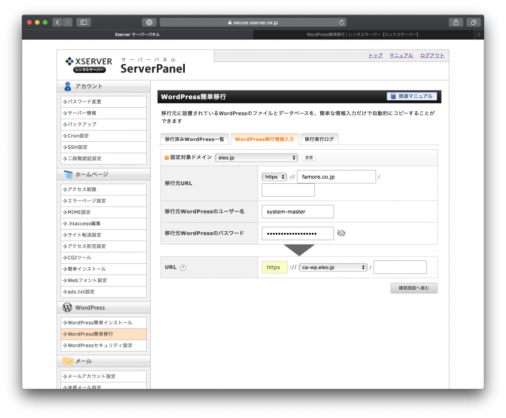 エックスサーバーのWordPressコピー機能を利用する方法